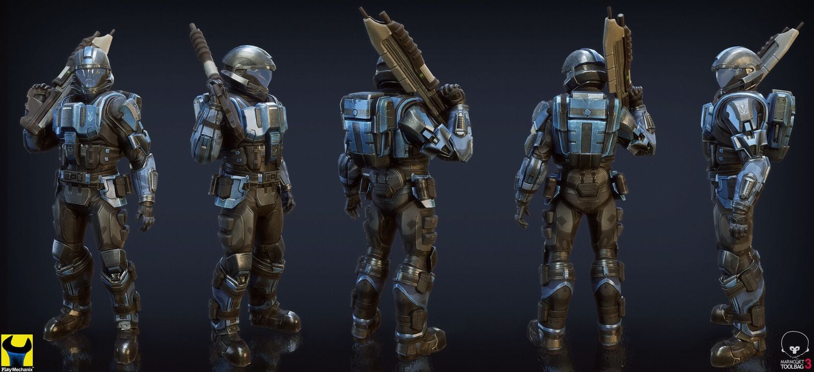 > - ODST Mk.IV Helmet - ODST Mk.IV Armor (far left image) - ODST Mk.V - ODST Mk.VI - ODST Mk.VII - ODST ONI “Nightfall” - Nightfall’s Halo 5 Beta design. - ODST_TAC worn by Ethan Graves - ODST_COMM worn by Marcus Hudson - ODST_HVY worn by Victor Ramos - ODST_DEMO worn by Ava Lang - James “The Rookie” Dante’s Shoulders and Attachment Schemes - Edward Buck’s Helmet & Chest variants - Veronica Dare’s ONI Recon S/1 ODST Armor - Taylor Henry “Dutch” Miles’ Helmet and armor attachment variants. - Kojo “Romeo” Agu’s Helmet and Shoulder variants - Michael J. “Mickey” Crespo’s Helmet, Shoulder, and attachments variants. - ODST Mk.V Variant seen worn by Lance Corporal Sparks of Sunray 1-1 (far right) - ODST SPI Armor (According to “Halo Ghosts of Onyx”, the S.P.I. Armor worn by the Spartan-IIIs was originally an ODST R-&-D project that was cancelled due to costs and insufficient technology at the time. It would be nice to see an S.P.I. model of ODST armor.) - Air Assault of course. - Possibly some new armor assets.