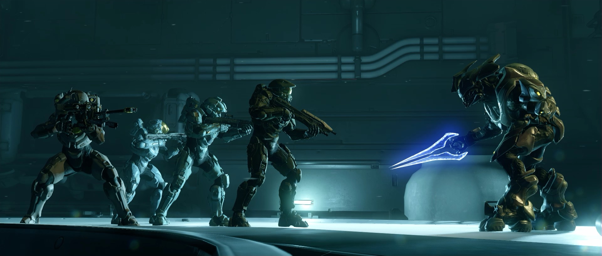 In this pic, Blue Team is surrounding a Sangheili, not shooting at him. This might be me, but it seems that maybe Chief will talk with the Sangheili and then possibly capture rather than kill him. Do you think this will happen?
