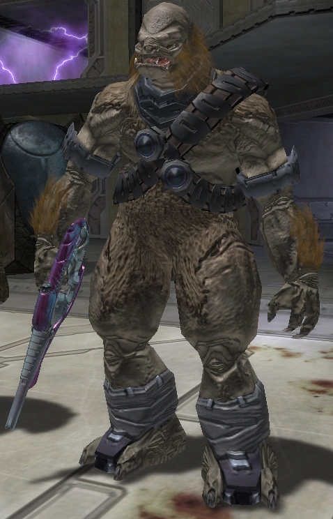 Now, one thing about Brute appearances that does bug me is how in some of the novels (such as “First Strike”), Brutes are described as essentially being hairless, when I know that they do have body hair like a gorilla (example: Tartarus and the rest of the Brutes in Halo 2. In H3, it’s obvious that not all have facial hair and their body hair is probably just hidden under the armor, or trimmed to fit under).