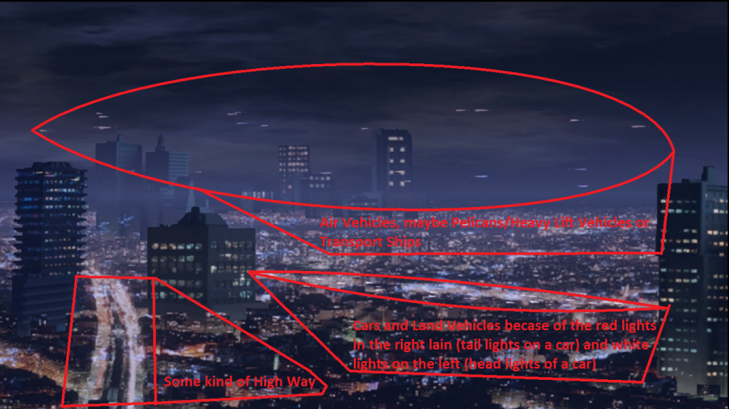 As you can see there are roads and there are cars on the roads. The air vehicles could be moving heavy equipment for the elevator from other places on the planet. Even though they don’t in the game, pelicans can go super sonic.