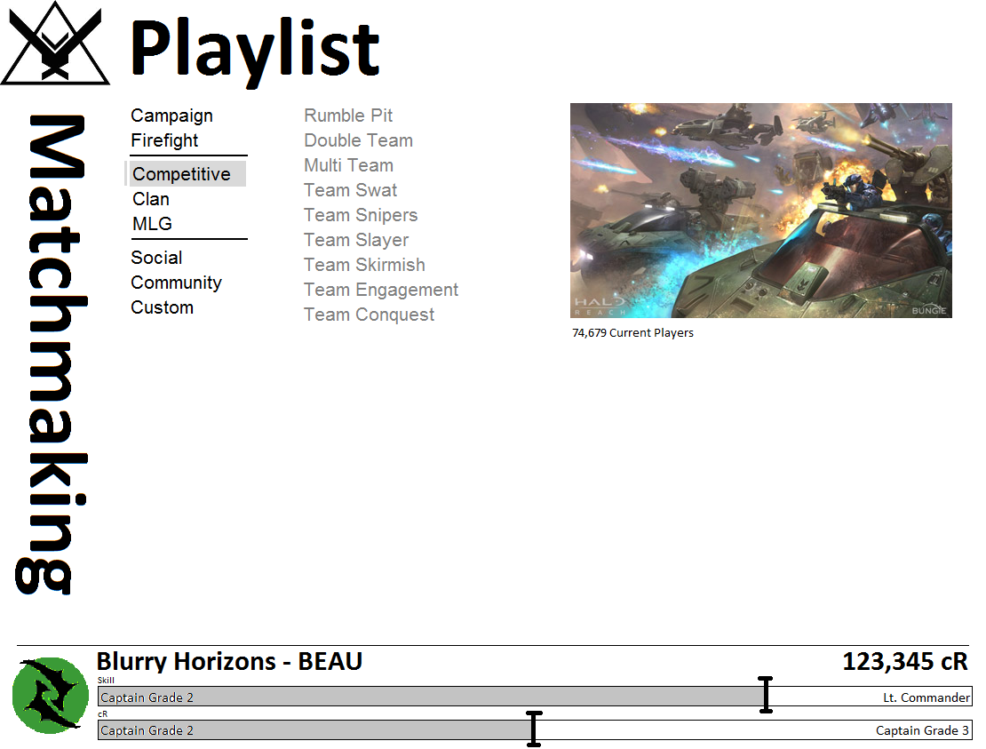 Having a skill-based ranking system that uses cR’s like experince in H3 and would only help for purchasing items for your character models.