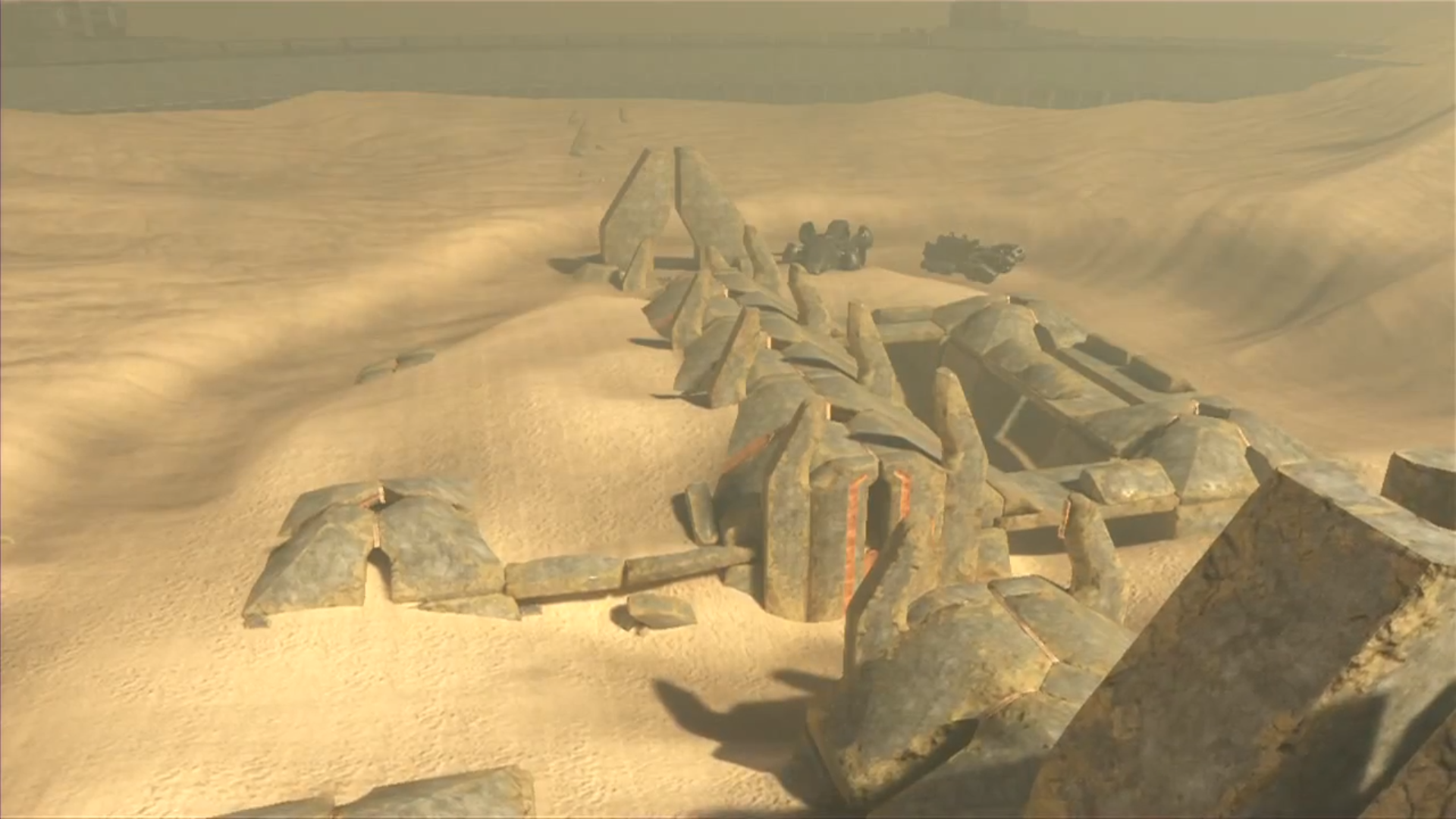 Compare that to the Ark in Halo 3. A bright, cloudy sky above rolling sand dunes, and you can see our galaxy as well as many other twinkling stars in the distance.