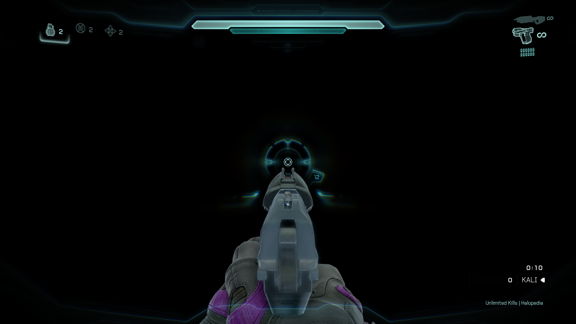 As seen below, the front part of his iron sight has the same ‘tongs’ seen on the projection sight… But why is it floating? It’s clearly not attached. Is it a mysterious magnetic levitation sight similar to forerunner weapons or simply, kept in by mistake after remodelling the base magnum?